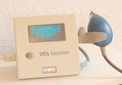 Zur genauen und individuellen Farbbestimmung wenden wir die neusten Techniken an. Zusätzlich zur klassischen Farbtabelle zur optischen Bestimmung der vorhandenen Zahnfarbe nutzen wir eine technische Farbmessung, die mittels Lichtstrahl völlig schmerzfrei die Farbschichten des Zahnes bzw. der umliegenden Zähne ermittelt und einen optimierten Vorschlag zur Zahnfarbe gibt.