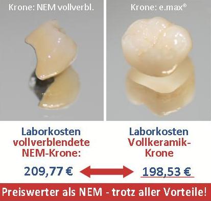 Unser Tipp: Preisvergleich Vollkeramik-Krone:Vollverblendete NEM-Krone